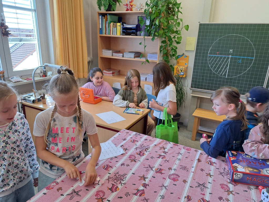 Die vierten Klassen besuchten am 21.05.25 die Buchhandlung "didactus" anläßlich des Welttag des Buches. Die Kinder bekamen die Gelegenheit Wissenswertes über die verschiedensten Bücher zu erfahren und durften auch an einer Rallye durch die Buchhandlung teilnehmen. Das Highlight war wie immer die Kugelbahn, die sich an der Wand entlang der Treppe schlängelt. Zum Abschluss gab es für jeden von uns ein Buch geschenkt.