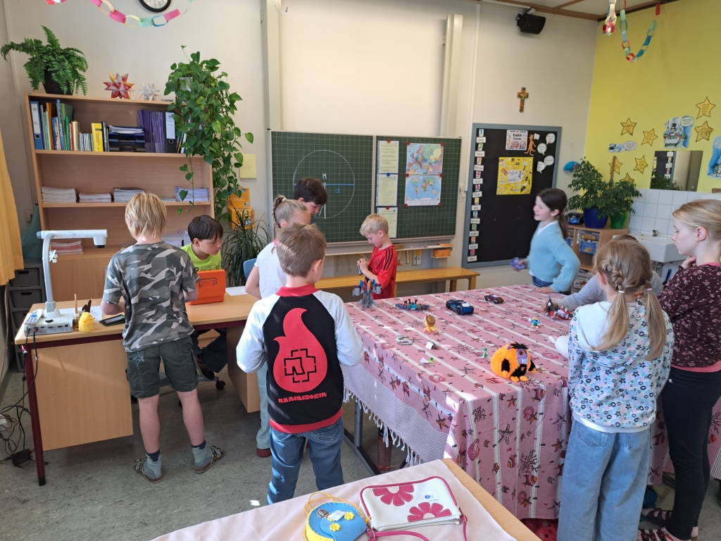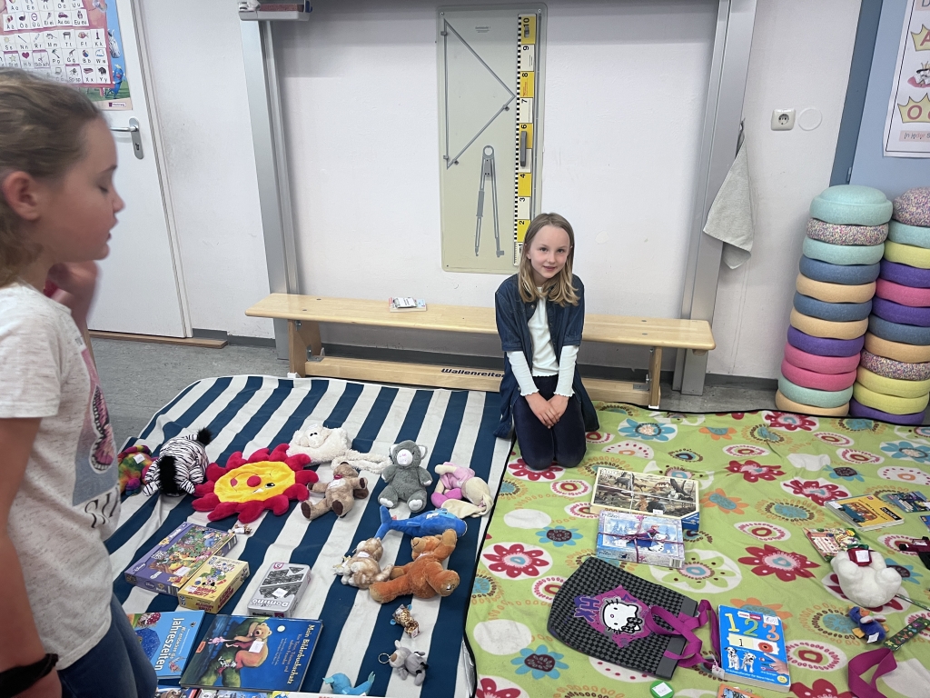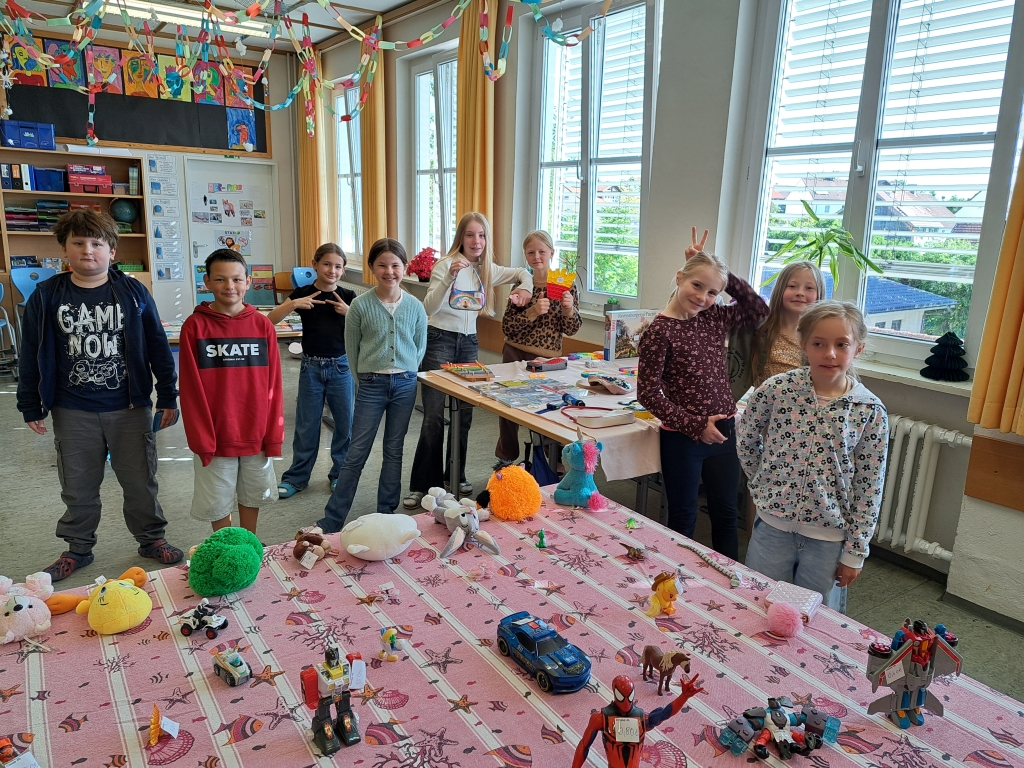Am Brückentag vor den Pfingstferien war an der Grundschule Heiligkreuz einiges geboten: Alle Klassen beteiligten sich an einem fröhlichen Flohmarkt, bei dem mitgebrachte Spielsachen und Bücher verkauft wurden. Wie jedes Jahr kamen auch die Kindergartenkinder zum Stöbern und Einkaufen vorbei.