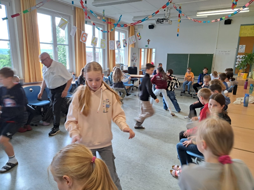 "Aufgschaut" ist ein Gewaltpräventions- und Selbstbehauptungsprojekt, das sich an Grundschulkinder richtet und von der Polizei in München zusammen mit der LMU entwickelt wurde. Es soll Kindern beibringen, Verantwortung zu übernehmen und Zivilcourage zu zeigen. Herr Christian Fiebig von der Polizei Sonthofen hat unseren Viertklässlern an den drei Tagen auch anhand einiger lustiger Spiele viel über die Entstehung von Mobbing und wie wir uns helfen können beigebracht.