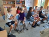 Spielerisch studierten die Kinder mit dem Merkmeister, Ralf Hofmann, Methoden ein, um sich viele Dinge merken zu können. Zum Beispiel wurden Körperteile und lustige Geschichten mit Dingen auf einem Einkaufszettel verknüpft. So konnten die Kinder schon nach kurzer Zeit einen Einkaufszettel mit 10 Dingen darauf „herunterrattern“.