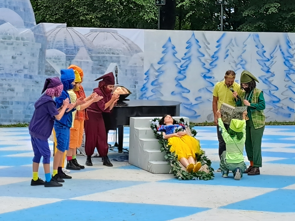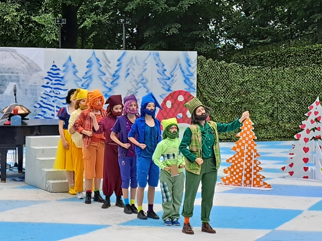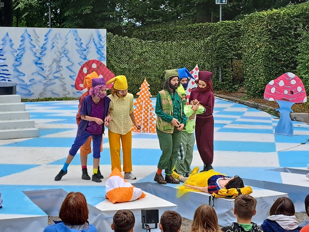 Heute war ein ganz besonderer Tag für unsere Grundschule Heiligkreuz: Gemeinsam machten wir einen Ausflug zur Burghalde, um dort das Theaterstück „Schneewittchen – neu verzwergt“ anzuschauen.